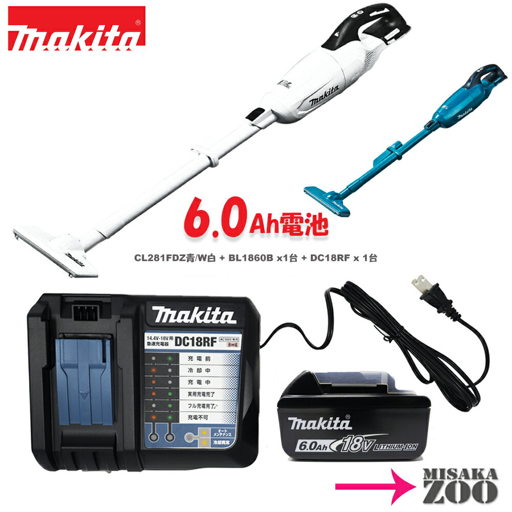 [6.0Ah-CL281FDRF青/W白サイクロンなし]Makita|マキタ 18V充電式クリーナー(カプセル式) ワンタッチスイッチ仕様 本体のみCL281FDZ青/W白x1台+6.0AhバッテリBL1860Bx1台+充電器DC18RFx1台 [SID2]