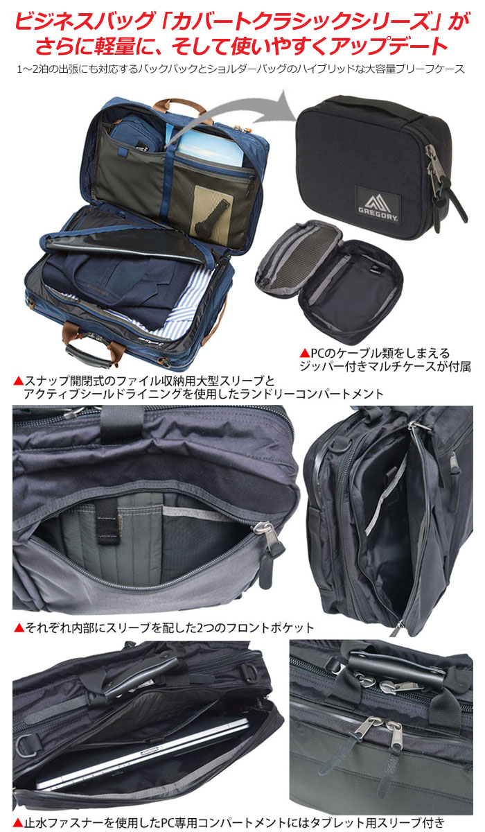 快適な背負い心地、フィット感、耐久性、機能性を常に追求し、進化を与え続け、それを背負う皆を今もなお、驚かせ続けています 商品説明ビジネスユースとカジュアルユースの境界をなくしたグレゴリーのビジネスバッグライン「COVERT(カバート)」シリーズがアップデート。